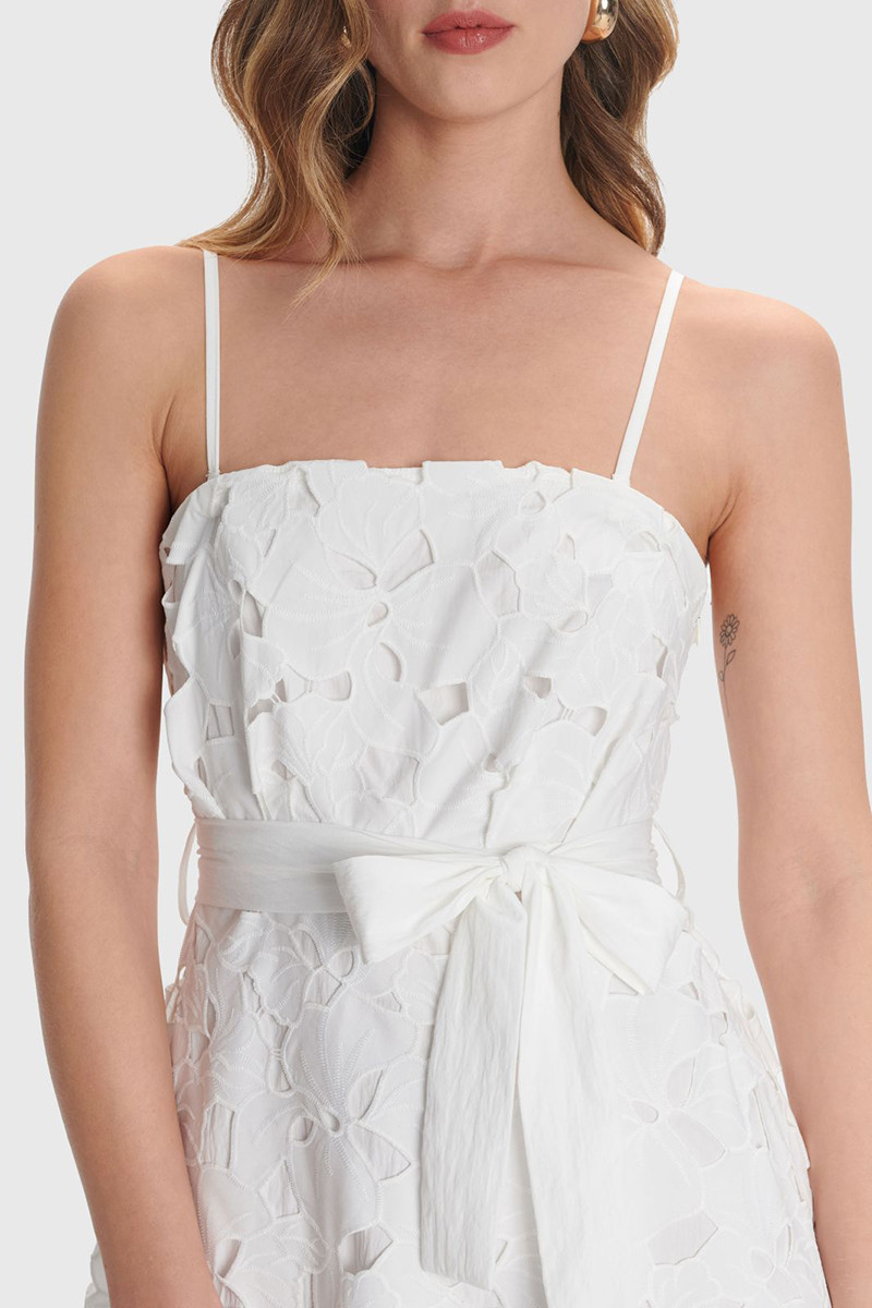 - Με δαντέλα και ασορτί ζώνη.