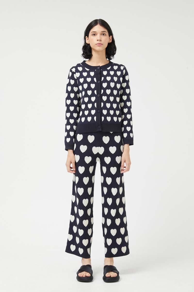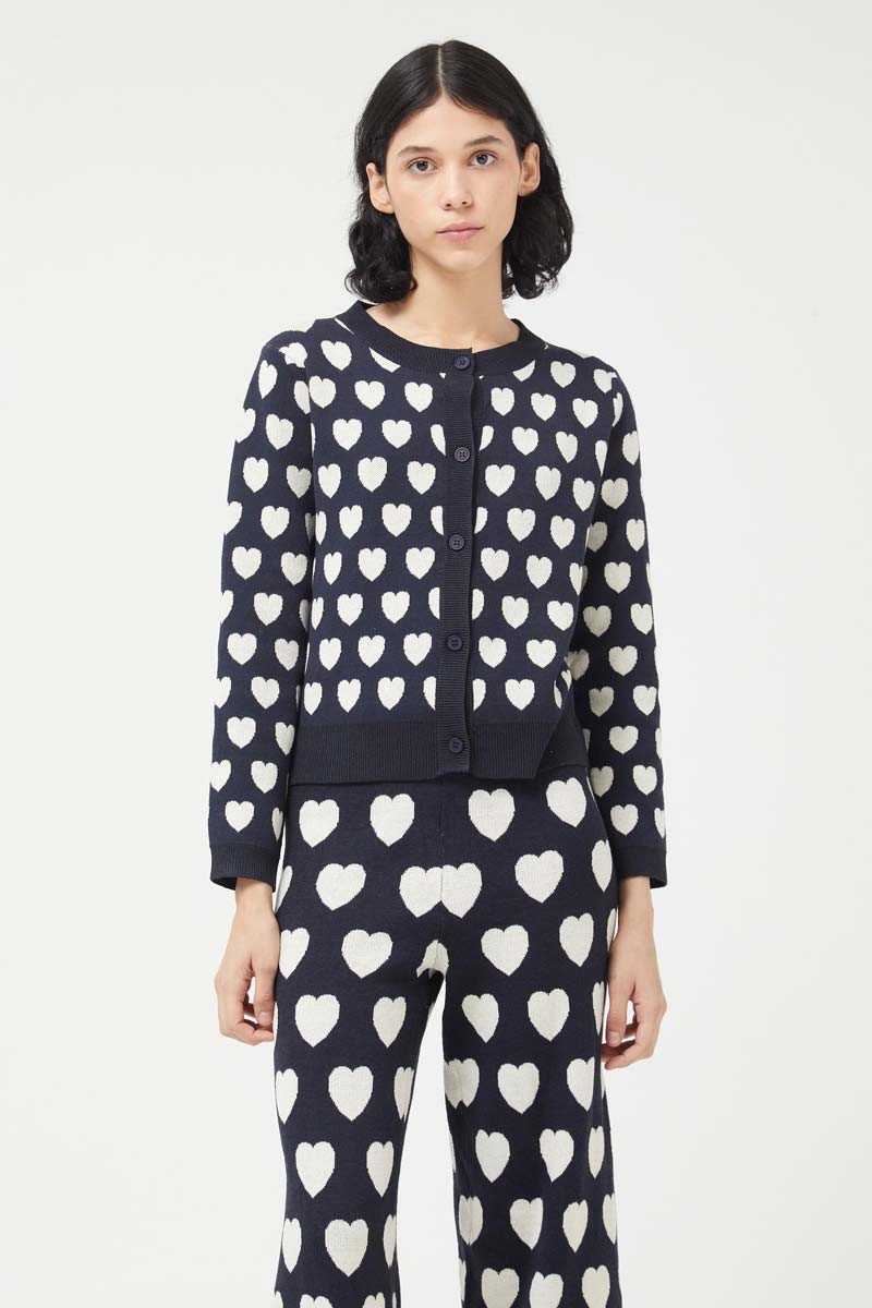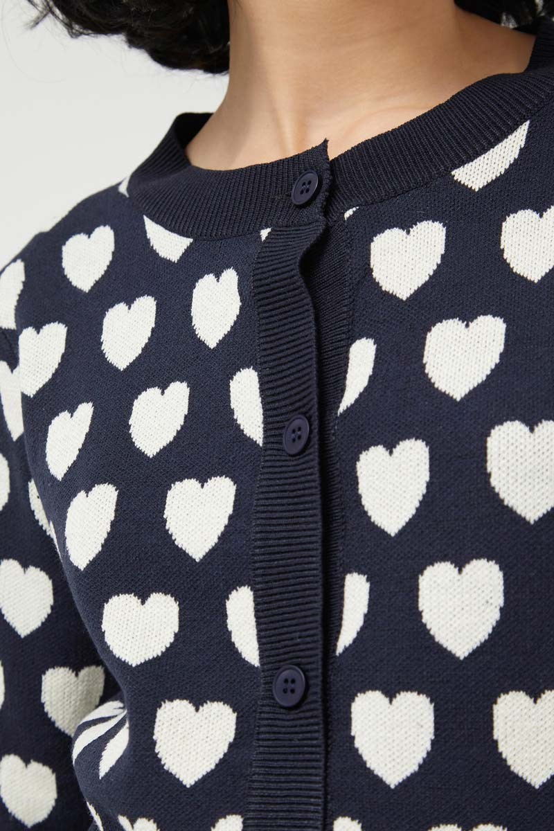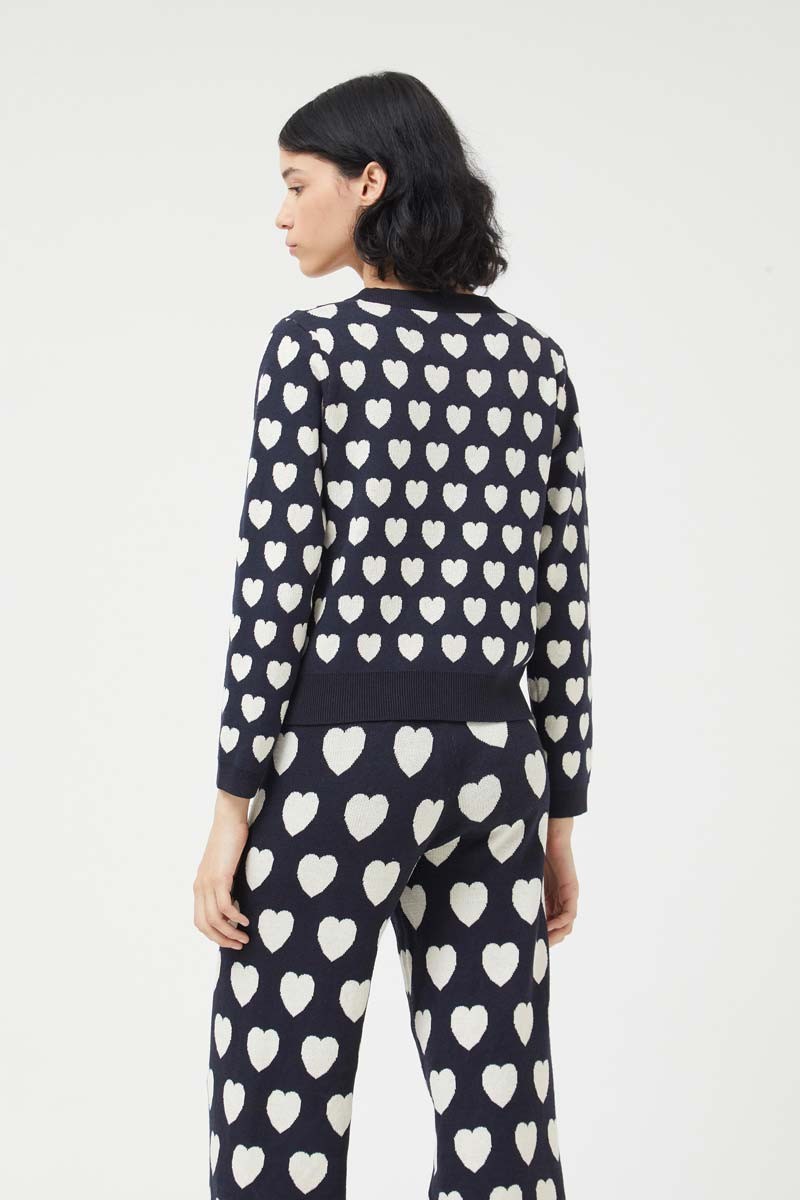 - Μαύρη πλεκτή ζακέτα intarsia με στάμπα λευκής καρδιάς