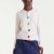 - Λευκή πλεκτή ζακέτα με στρογγυλή λαιμόκοψη και μακριά μανίκια.