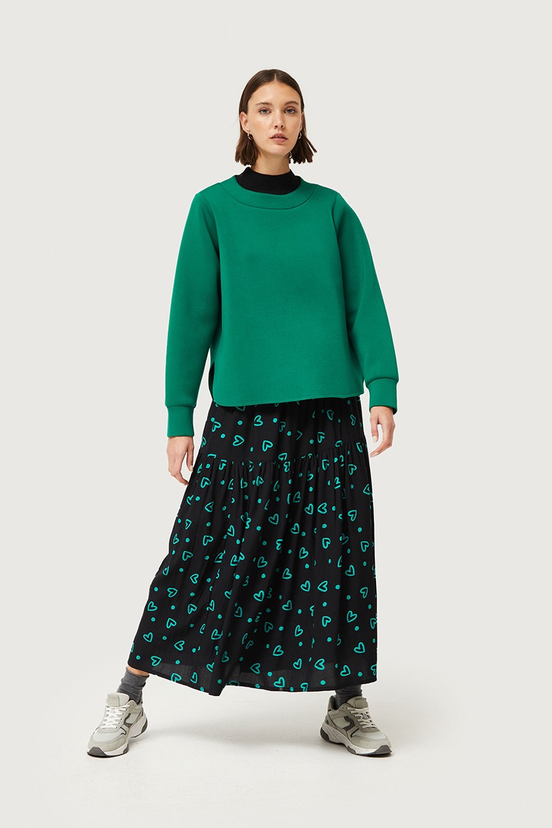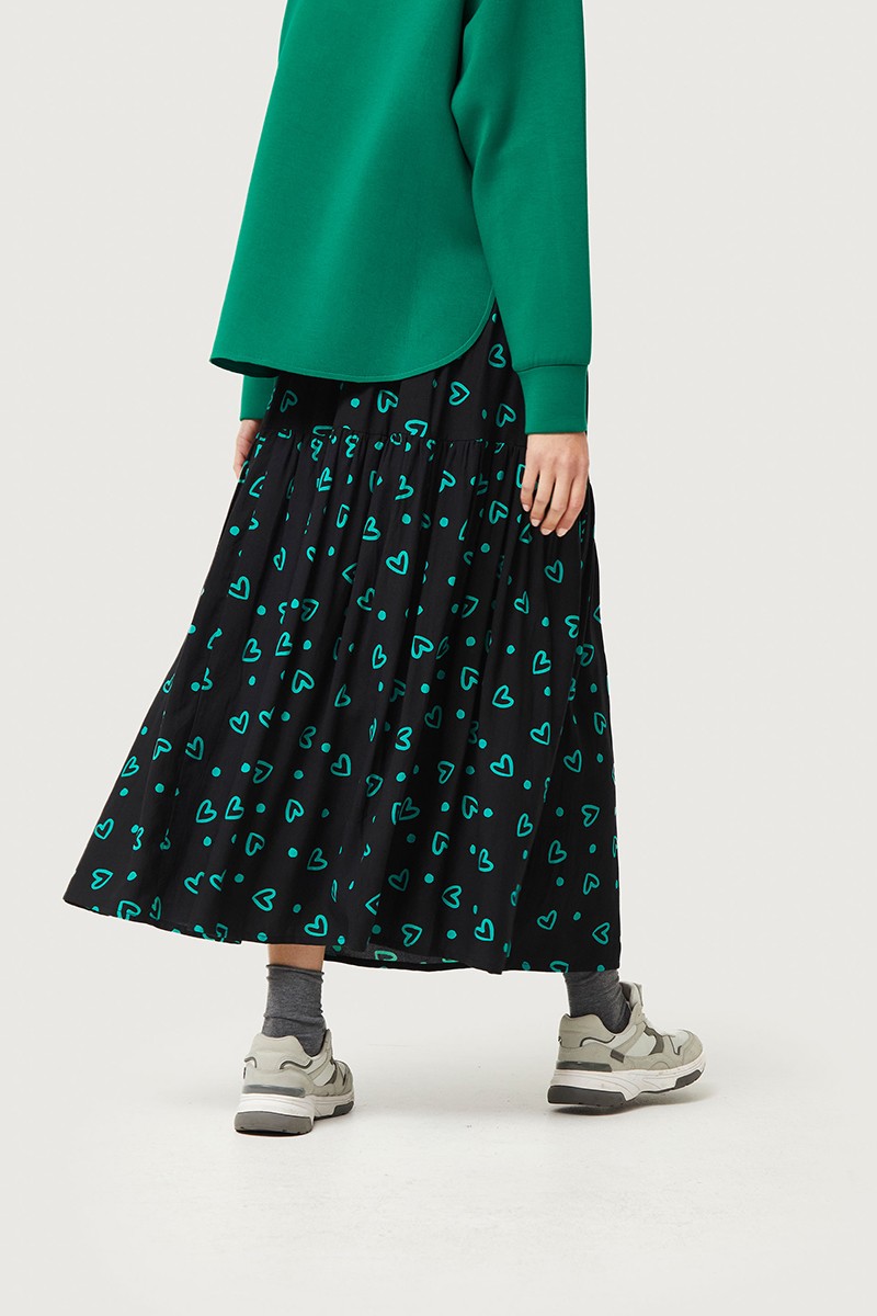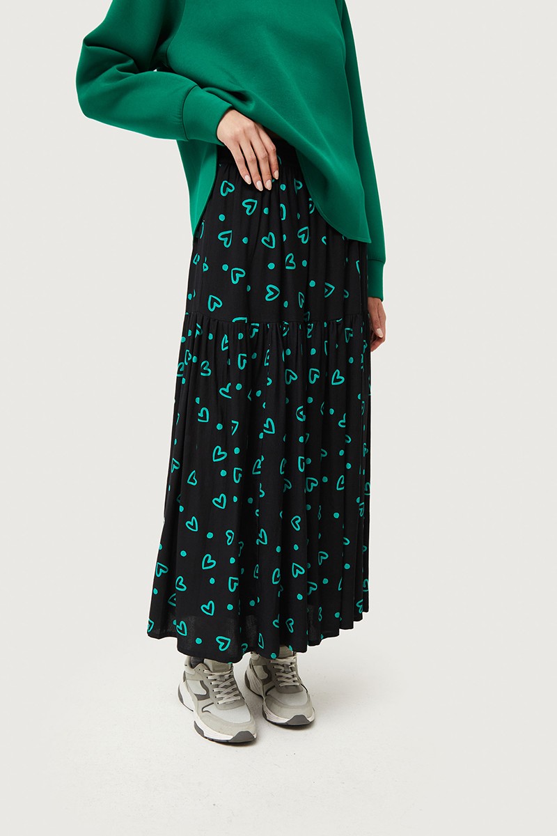 - Μαύρη μακριά φούστα με στάμπα πράσινη καρδιά
