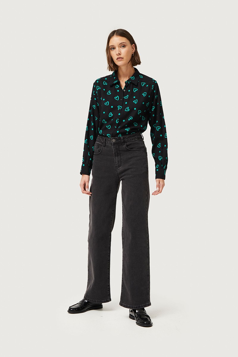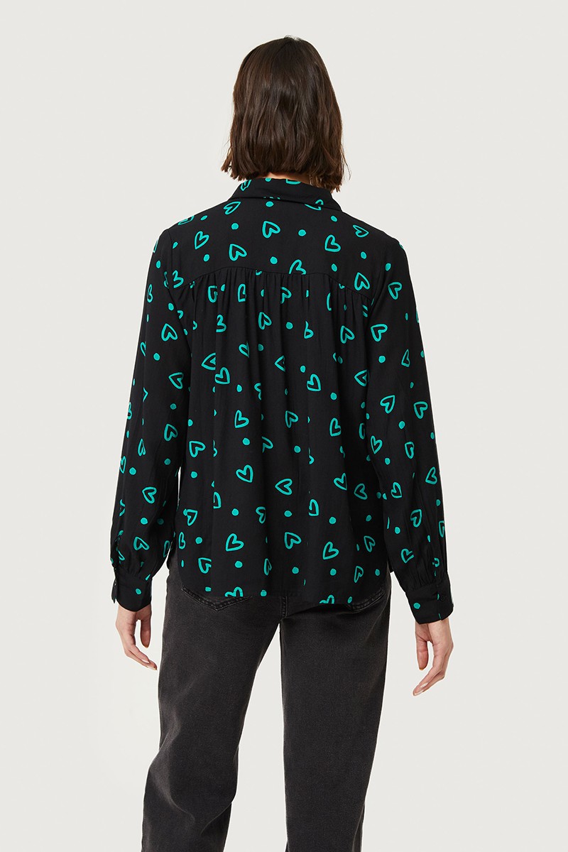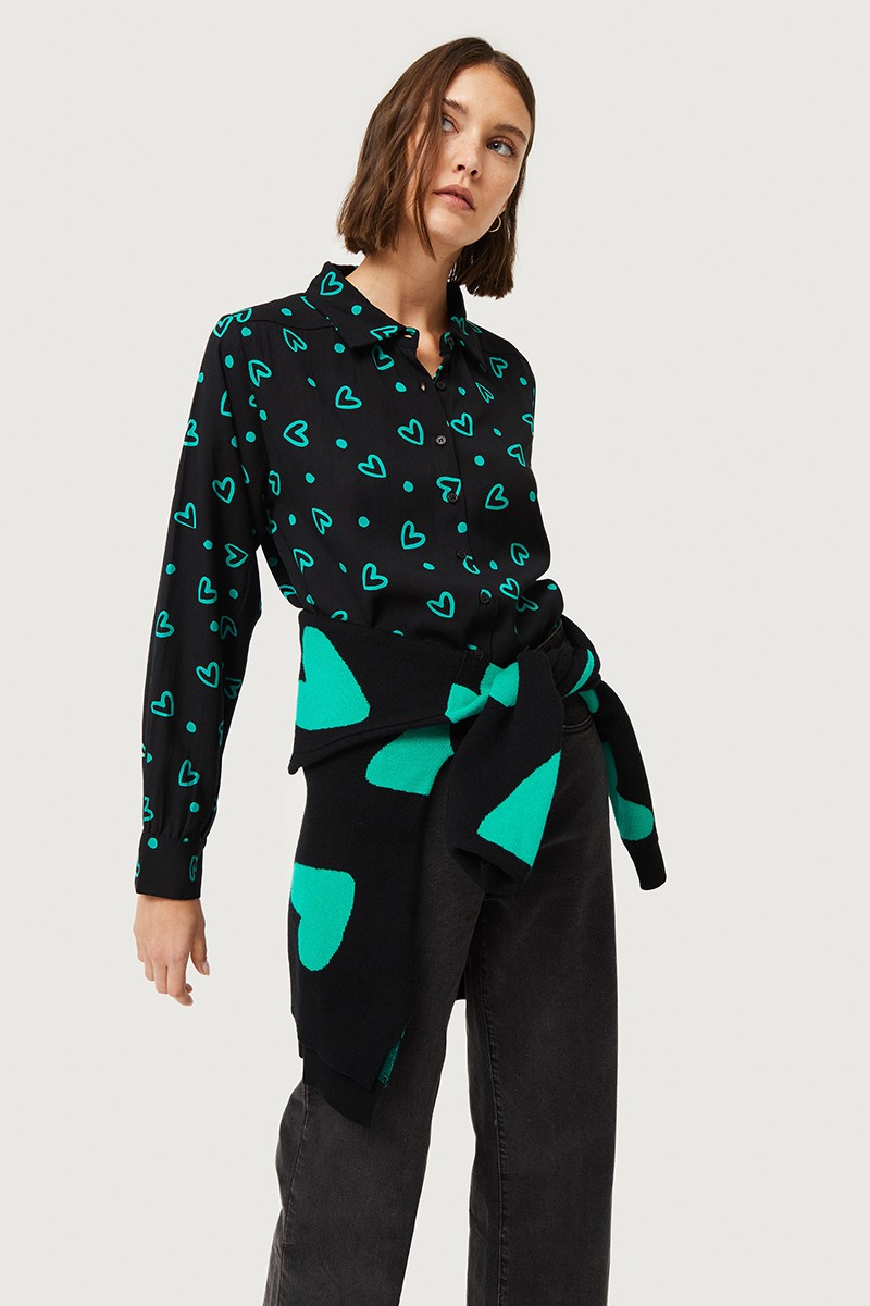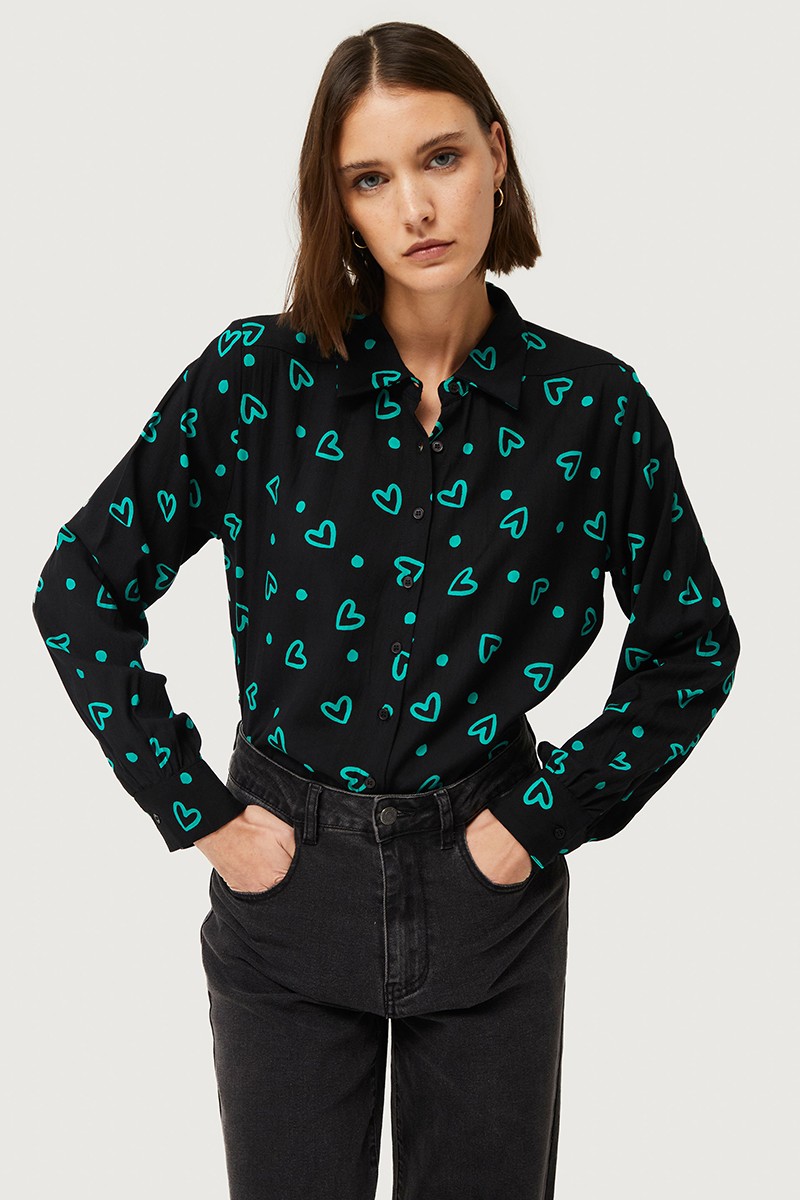- Μαύρο πουκάμισο με τύπωμα καρδιές