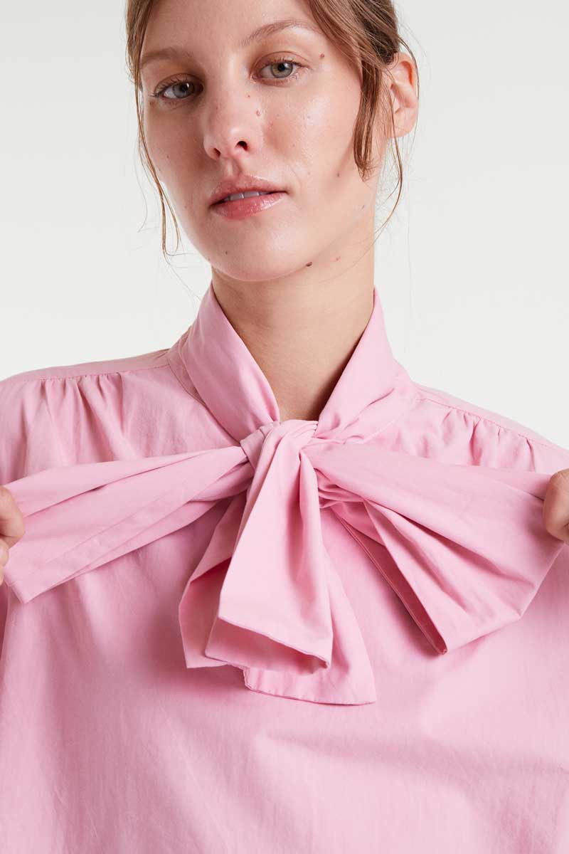 - Με μεγάλο γιακά με φιόγκο και μακριά μανίκια με κουμπωτές μανσέτες.