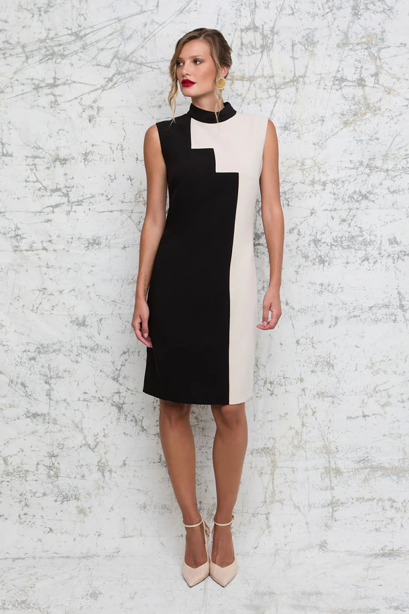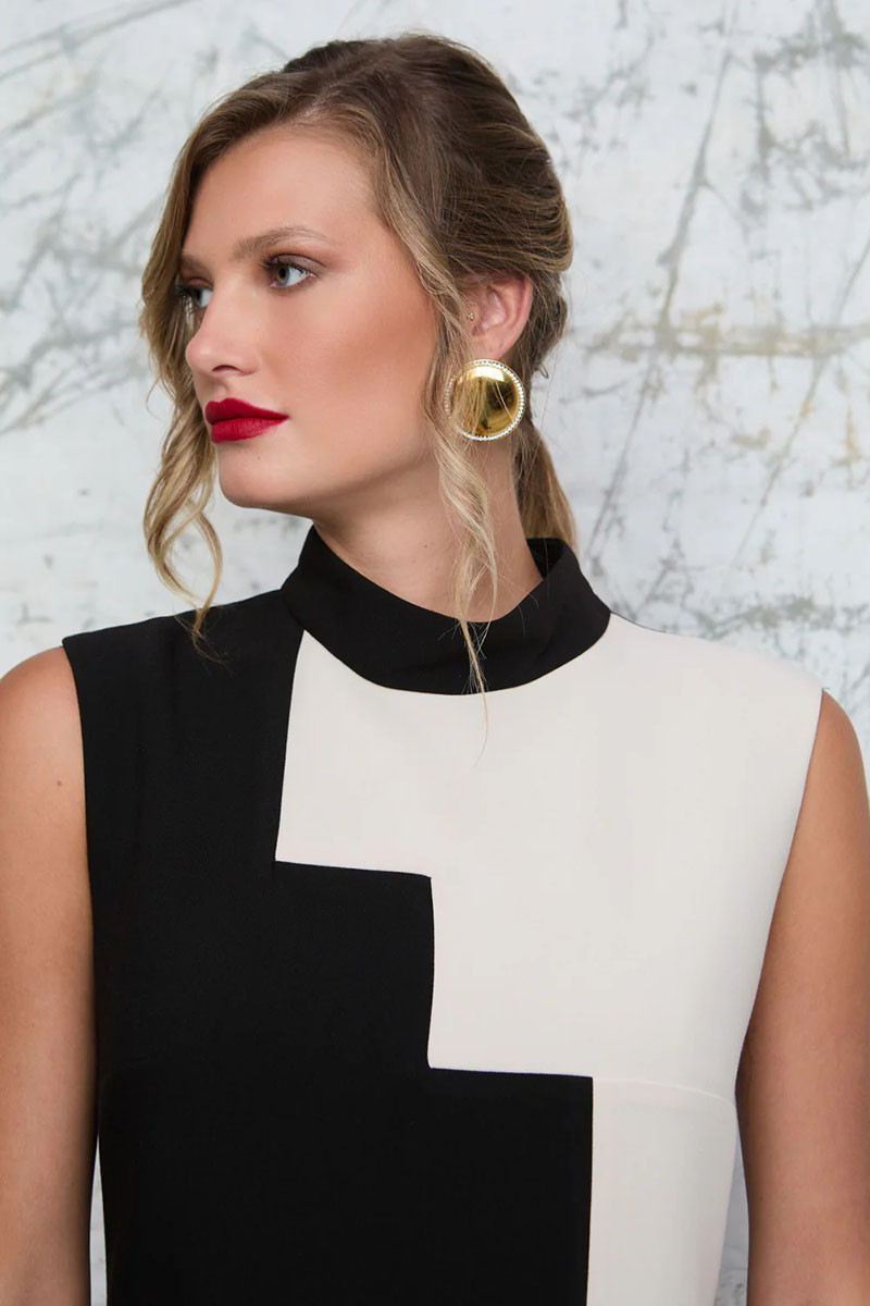 - Γεωμετρικό δίχρωμο μοτίβο σαν παιχνίδι φωτός και σκιάς Ψηλός λαιμός για κομψότητα