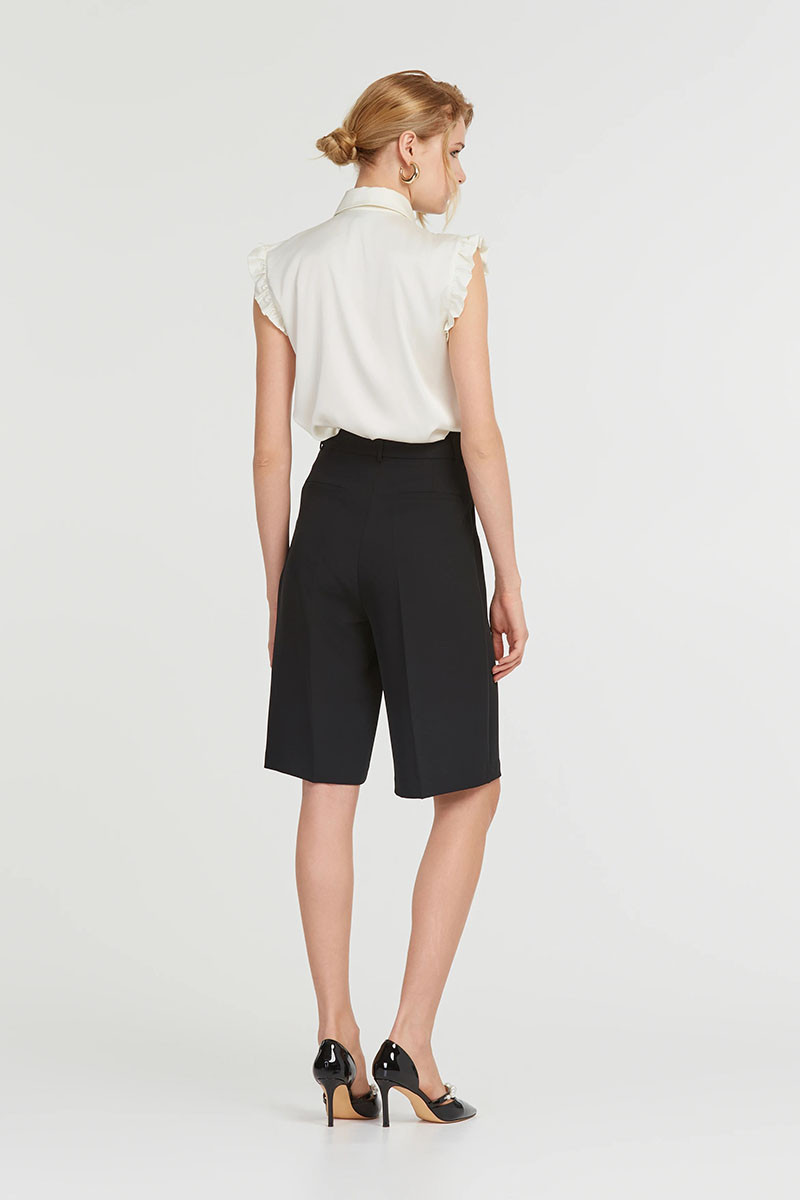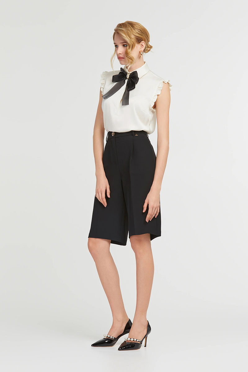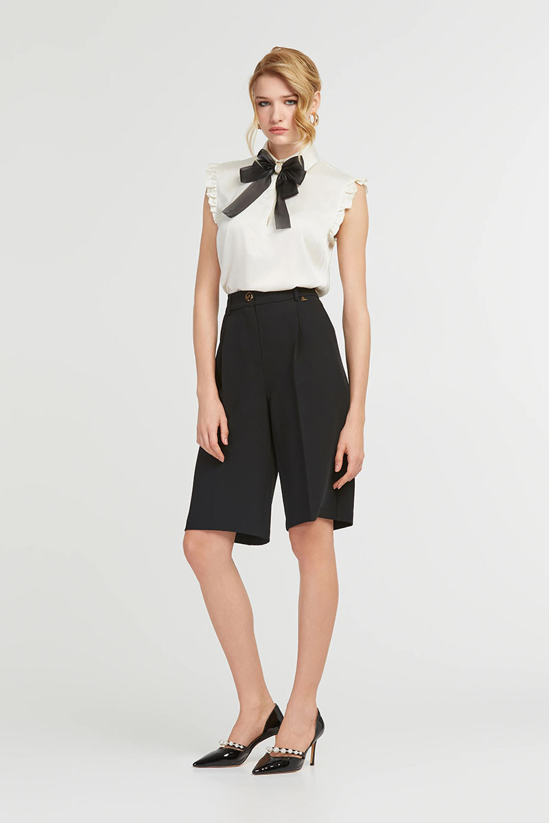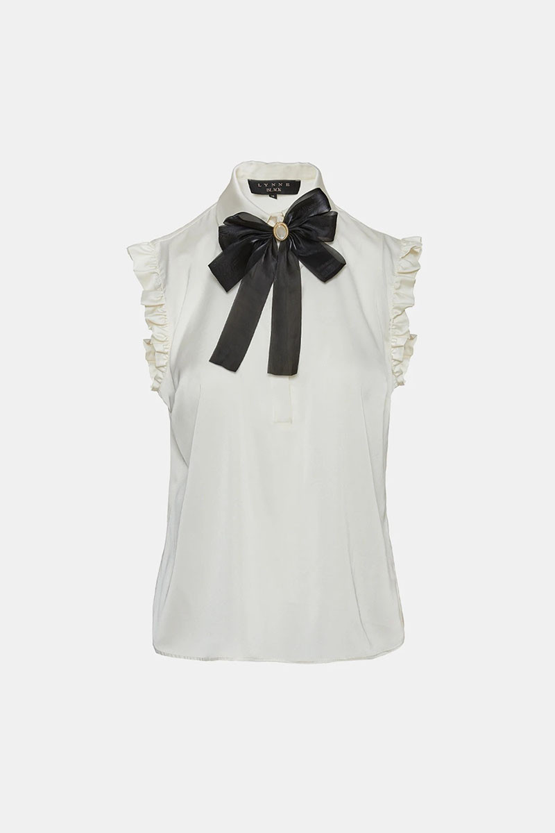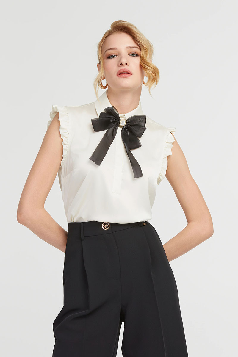 - Αμάνικη μπλούζα με βολάν κουμπιά και αποσπώμενο φιόγκο σε σατέν όψη, κανονική εφαρμογή
