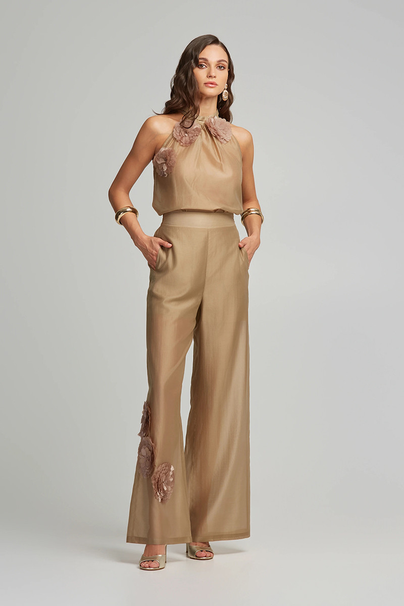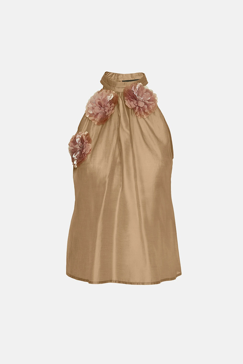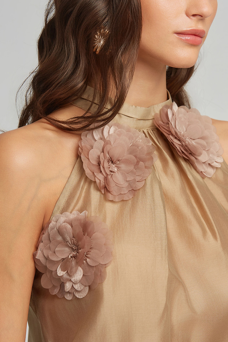- Έξωμο τοπ με απλικέ λουλούδια σε άνετη γραμμή