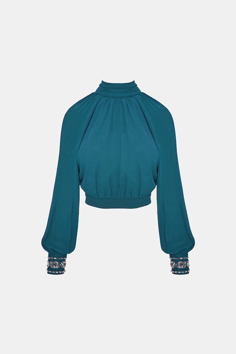 - Μπλούζα με κρύσταλλους στα μανίκια διαφανής