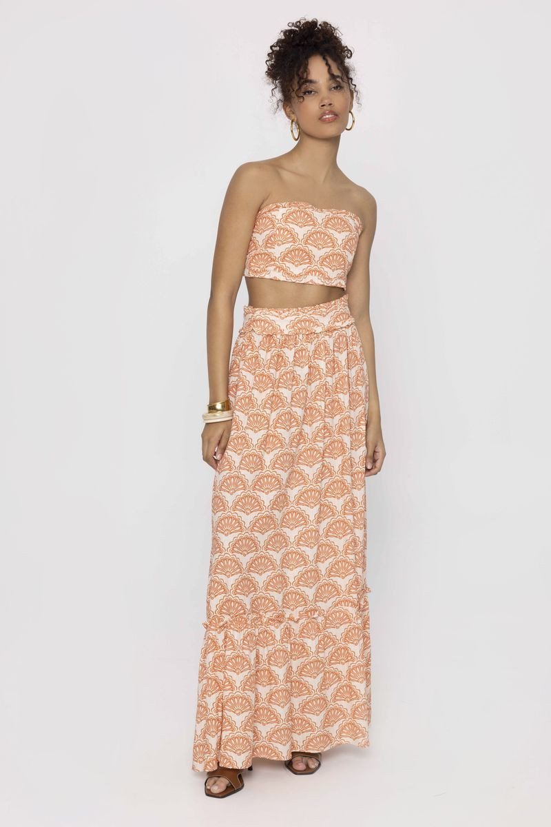- Ανανεώστε την γκαρνταρόμπα σας με αυτήν την εντυπωσιακή μακριά φούστα από τυπωμένο λινό ύφασμα, σχεδιασμένη για άνεση και μοναδικό στιλ. Χαρακτηριστικά και Οφέλη: Φαρδιά γραμμή: Προσφέρει εξαιρετική άνεση και ελευθερία κινήσεων, ιδανική για κάθε σωματότυπο. Τυπωμένο λινό ύφασμα: Χαρίζει δροσερή και ευχάριστη αίσθηση, ιδανικό για ζεστές ημέρες, ενώ το τύπωμα αναβαθμίζει την εμφάνιση. Μεγάλο βολάν στο τελείωμα: Προσθέτει κίνηση και κομψότητα στη σιλουέτα σας, δίνοντας θηλυκή και εντυπωσιακή εμφάνιση. Ζωνάκι με βολάν: Τονίζει διακριτικά τη μέση σας και ενισχύει τη θηλυκότητα του σχεδίου. Φερμουάρ στο κέντρο πίσω: Επιτρέπει εύκολη εφαρμογή και τέλεια εφαρμογή, διατηρώντας καθαρή και κομψή τη γραμμή της φούστας. Σύνθεση 30% Linen – 70% Viscose: Συνδυάζει την αναπνευσιμότητα του λινού με τη μαλακή αίσθηση και την ανθεκτικότητα της viscose, εξασφαλίζοντας άνετη εφαρμογή και αντοχή.