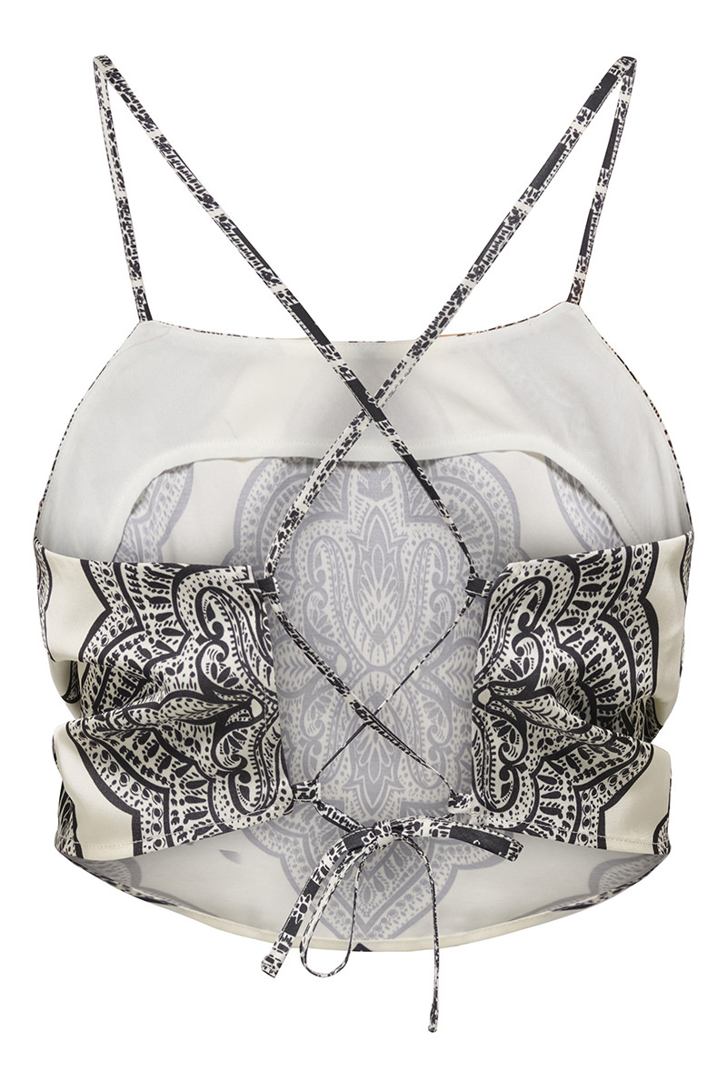 - Λεπτές τιράντες που δένουν στο πίσω μέρος •