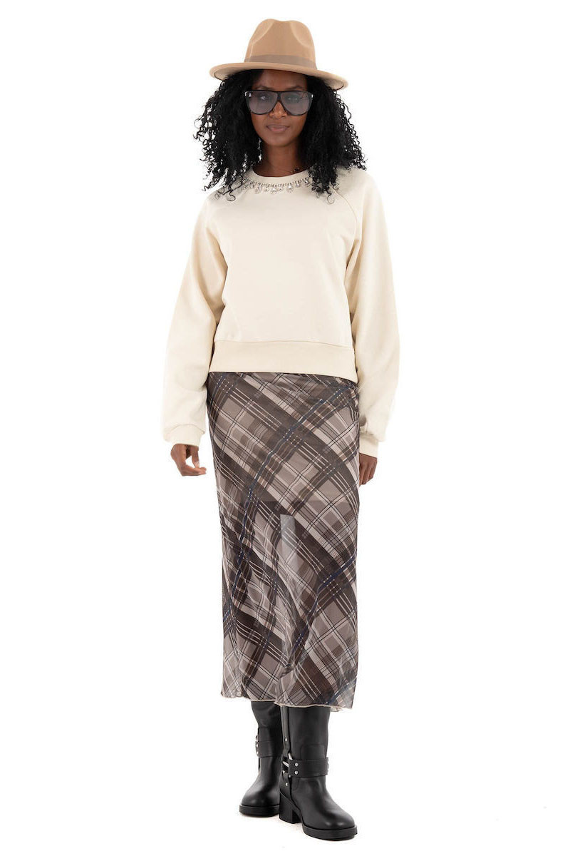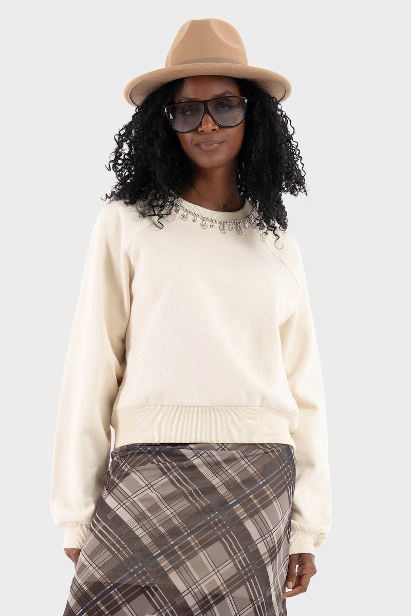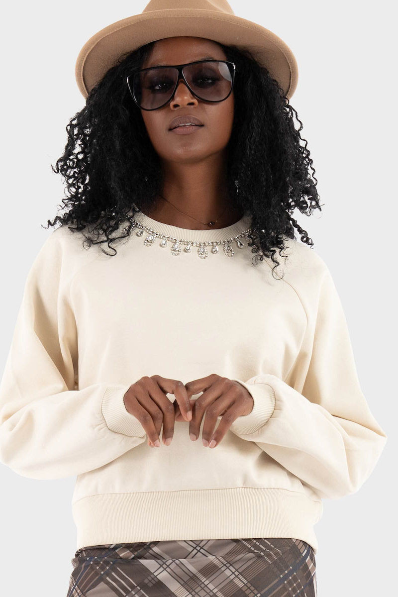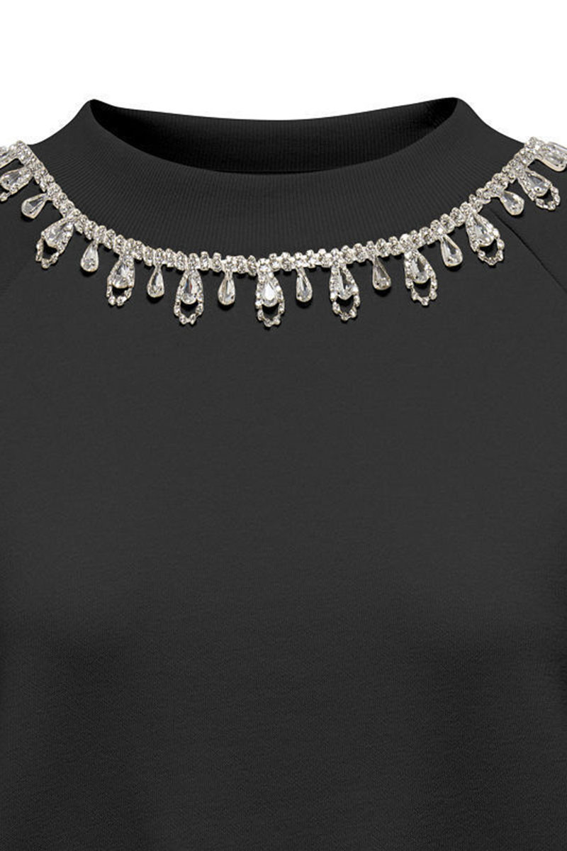 - Λεπτομέρεια με στρας (κολιέ) στη λαιμόκοψη